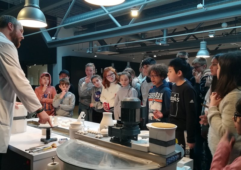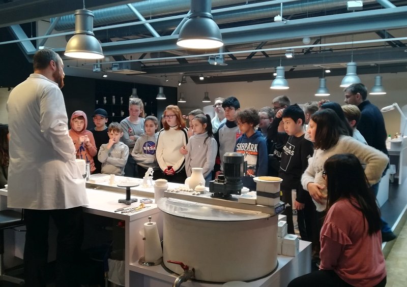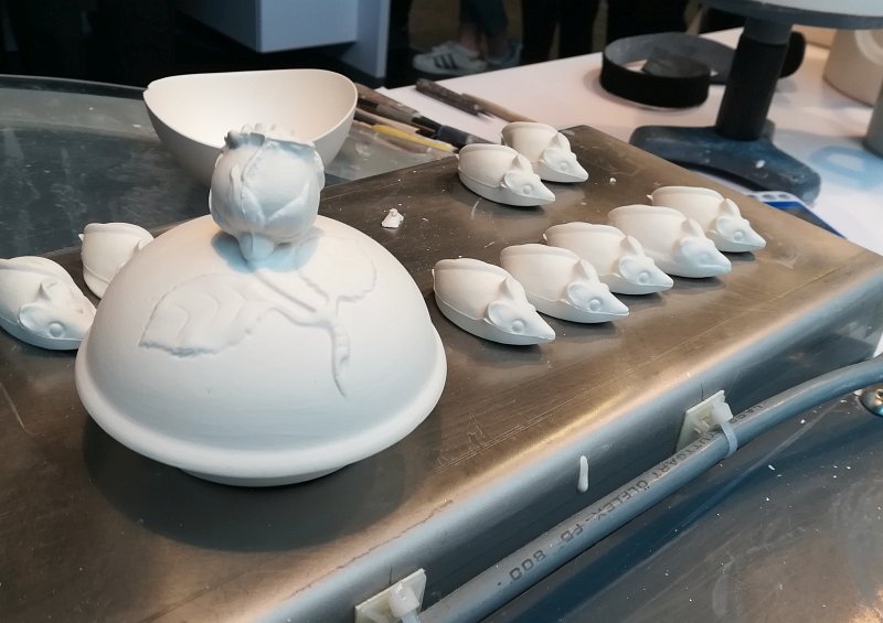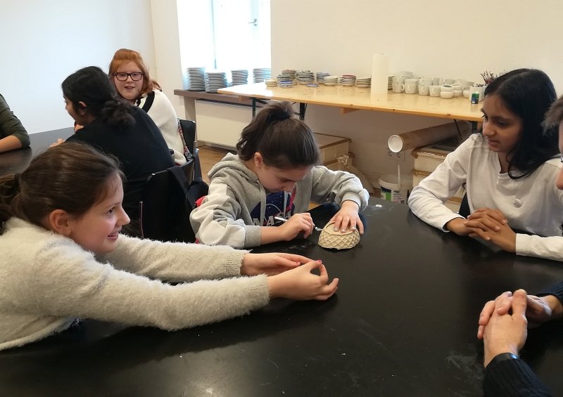 Im nächsten Schritt gingen es in die Besucherwerkstatt. Hier gab es praktische Einblicke in die Verarbeitung der Porzellanmasse. Wie wird eine Vase hergestellt? Wie kommt der Henkel an die Tasse? Und wie kommt eigentlich die Wölbung in den Suppenteller? Diese ganzen Informationen waren eine wichtige Vorbereitung, denn nach der Mittagspause sollten es mit dem praktischen Teil des Tages losgehen!