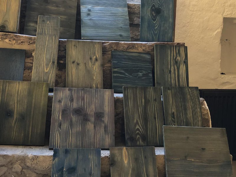 Jacob Pins hat die abgedruckte Maserung des Holzes in seinen Werken durch hinzugemalte Motive so ergänzt, dass ein ganz neues Motiv entstand. In einem Bild erinnert die Maserung beispielsweise an Wellen, sodass Pins hier malerisch ein Boot hinzugefügt hat.
