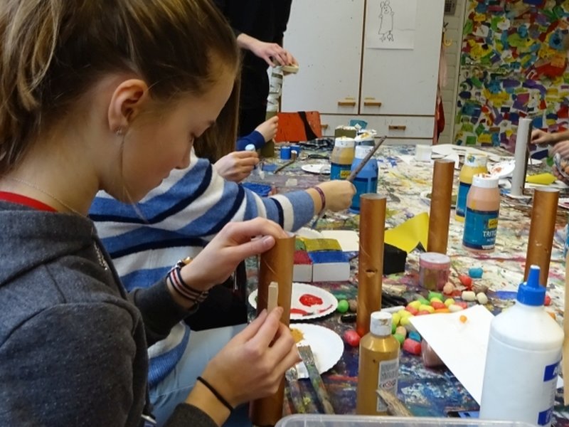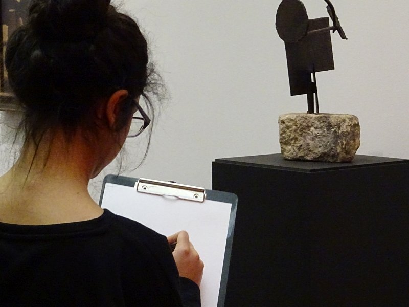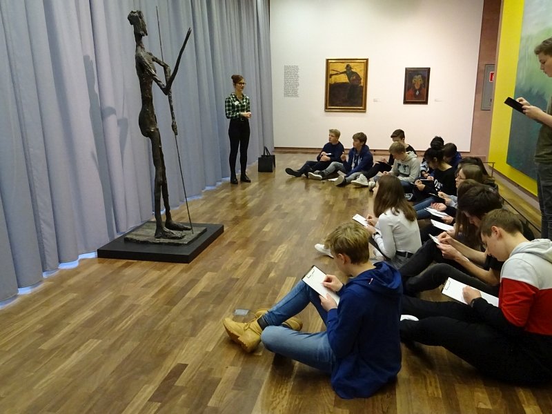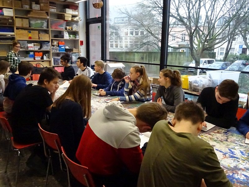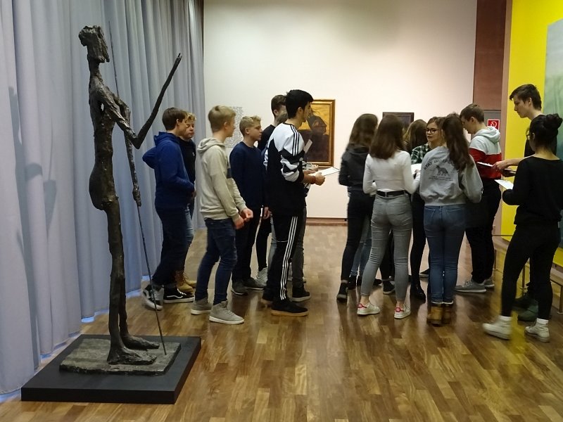 Am 28.01.2019 besuchte die KulturScouts-Klasse 9d des Einstein-Gymnasium Rheda-Wiedenbrück die Kunsthalle in Bielefeld. In einer spannenden Rallye durch die Ausstellung begegneten die Schülerinnen und Schülern skulpturalen Meisterwerken. Mit Stift und Papier bewaffnet wurden die Werke nicht nur mit den Augen, sondern auch mit der Hand zeichnerisch betrachtet. Im Anschluss wurden die Scouts im „Büro Farbenrausch“ selbst zu Bildhauern und entwickelten eigene Plastiken.