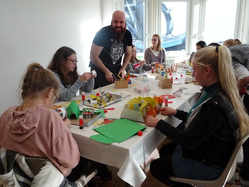 - Zur Wahrnehmung aktueller Kunst" teil. Bei einem Rundgang durch das Museum wurden die Scouts für das eigene, individuelle Sehen sensibilisiert und gingen der Frage nach, warum wir als Menschen Unterschiedliches in Bildern sehen. Im Anschluss an den Rundgang durch das Museum ging es für die Scouts in das Marta-Atelier, um dort selbst kreativ zu werden.