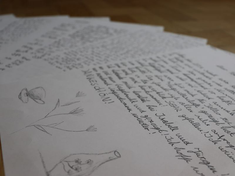 Die Schüler*innen haben uns viele handgeschriebene Berichte zugeschickt. Hier sind zwei davon (stellvertretend) :