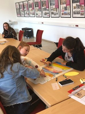 First, we had a really good guided tour through the exhibition. After that, we discovered more details about the history of the Russo-Germans on our own with the help of tablets. “That was really funny and interesting at the same time”, Leni S. said cheerfully. At the end, we decorated our own suitcase with pictures which showed where we would go if we had to flee. “The children were really surprised when they heard the story of the Russo-Germans. They all didn’t know that the Russo-Germans had such a disturbing history”, Mrs. Laumann, our class teacher, said to the leader of the museum.